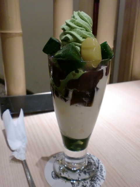 この後、ご飯食べるし・・・と諦め、普通サイズの「都路里パフェ」に変更しました。